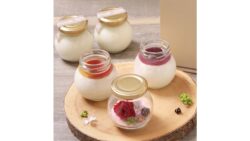 よく見かけるプリンとはひと味違う「白い」プリンと、フラワーギフト付きのセット。