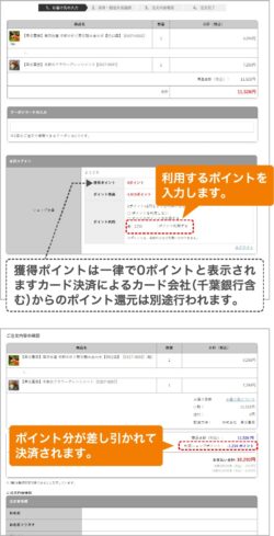 ※ポイントは商品代金と送料に充てることができます (送料は配送先住所入力後の「3.注文内容確認」画面で確認できます)。