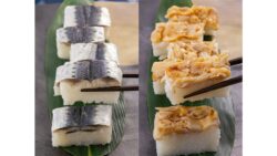はまぐりを茹でただし汁と一緒に煮詰めて、繊細な甘さに仕上げたタレをかけて食べる煮はまぐりの押し寿司は、貝類の磯の香りや食感が苦手な方にも美味しく食べていただける味わいに仕上がっています。